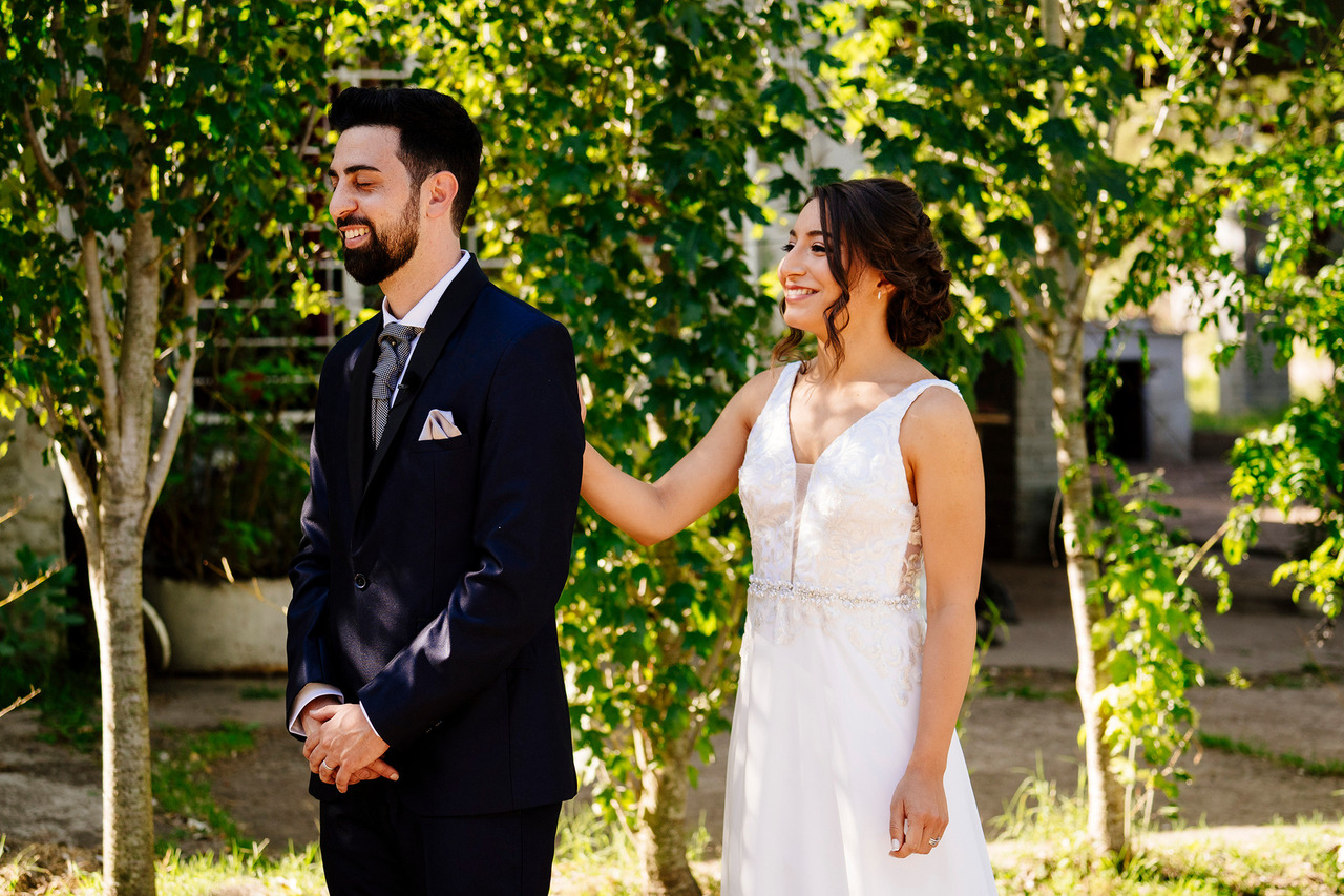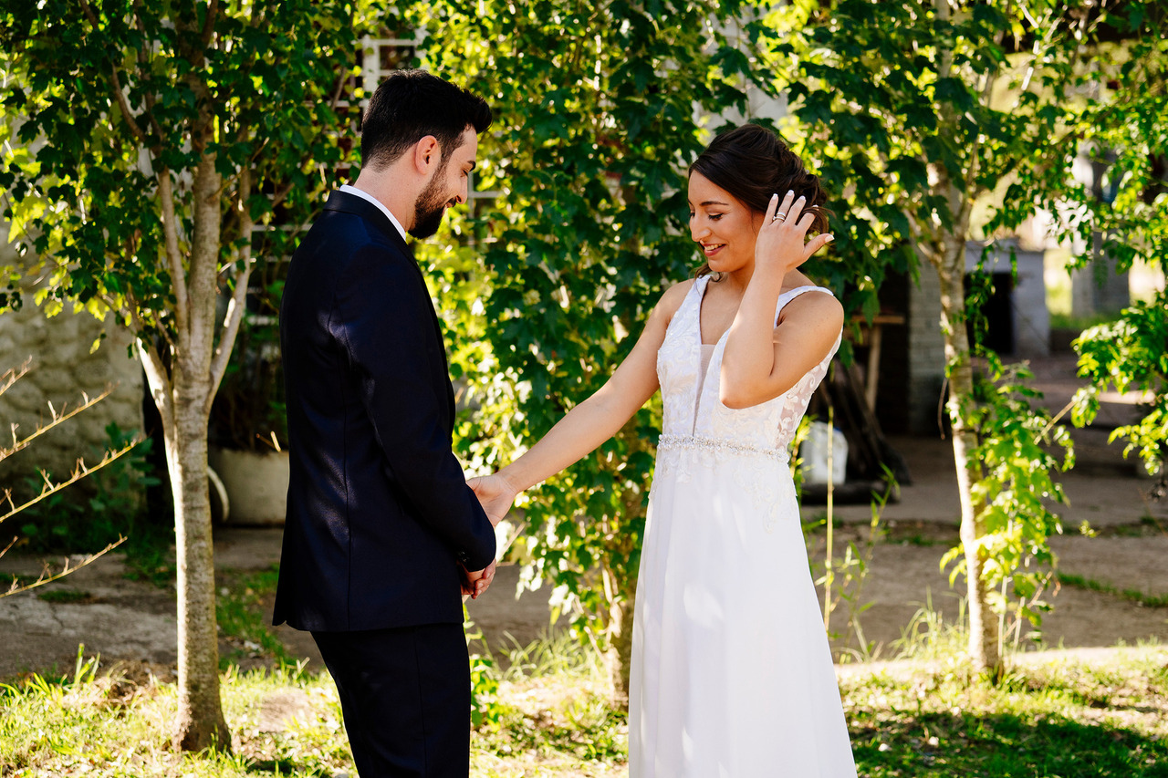 El “first look” hace referencia a una práctica de los novios y novias en las que, al contrario de muchas tradiciones y rituales en torno a las bodas, se ven antes del casamiento, ya con sus vestimentas. Es una oportunidad para poder hacer fotos de los momentos previos, pero también una manera de poder compartir intimidad y palabras de amor antes de uno de los días más inolvidables para la pareja.